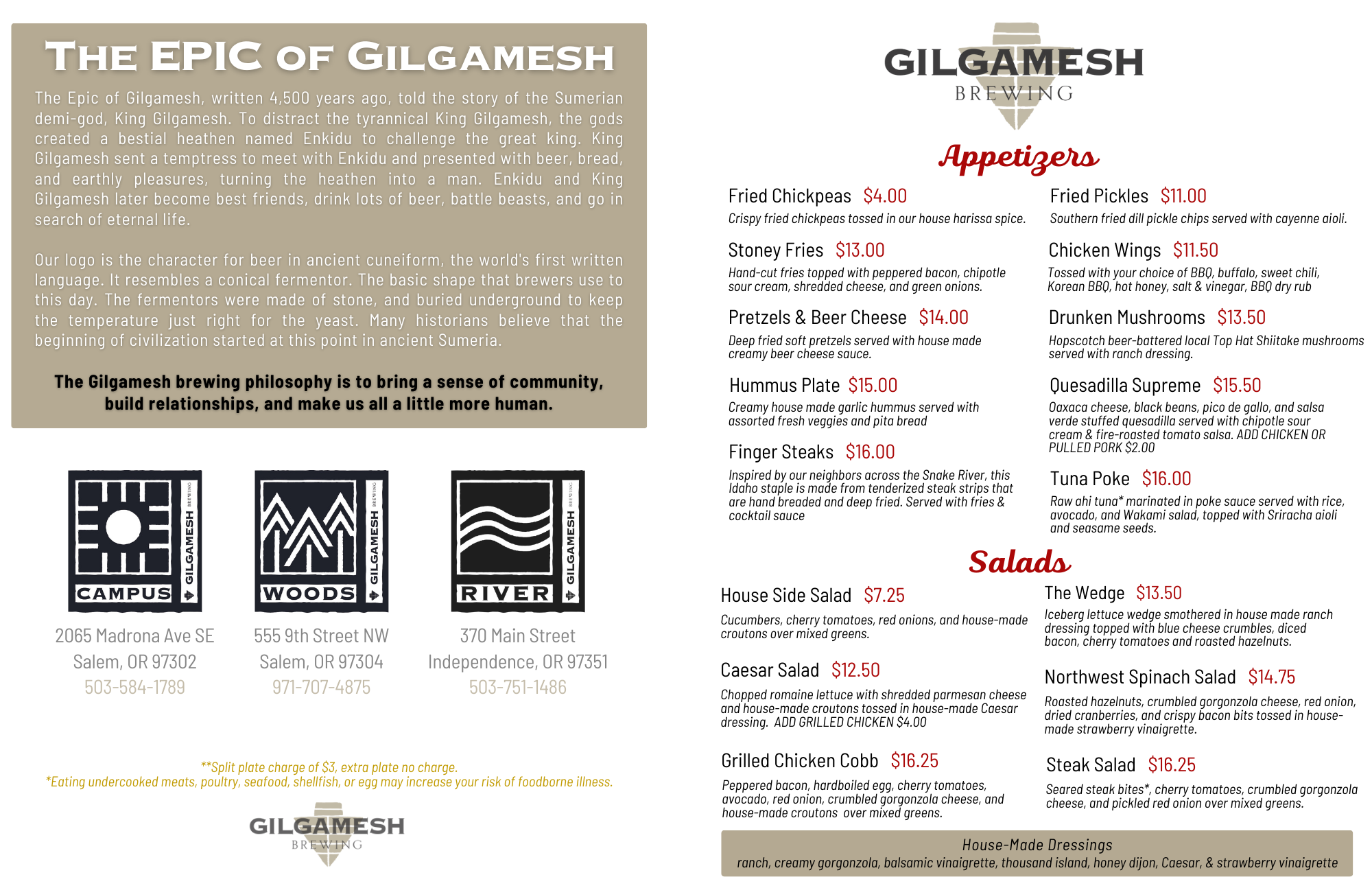 Conveniently located in West Salem, our Woods location is a family-friendly, cozy place to grab a bite to eat! In addition to our menu, we also offer brunch on weekends. The Woods is a perfect place to catch the game, listen to live music, or sit out on our fireside patio.